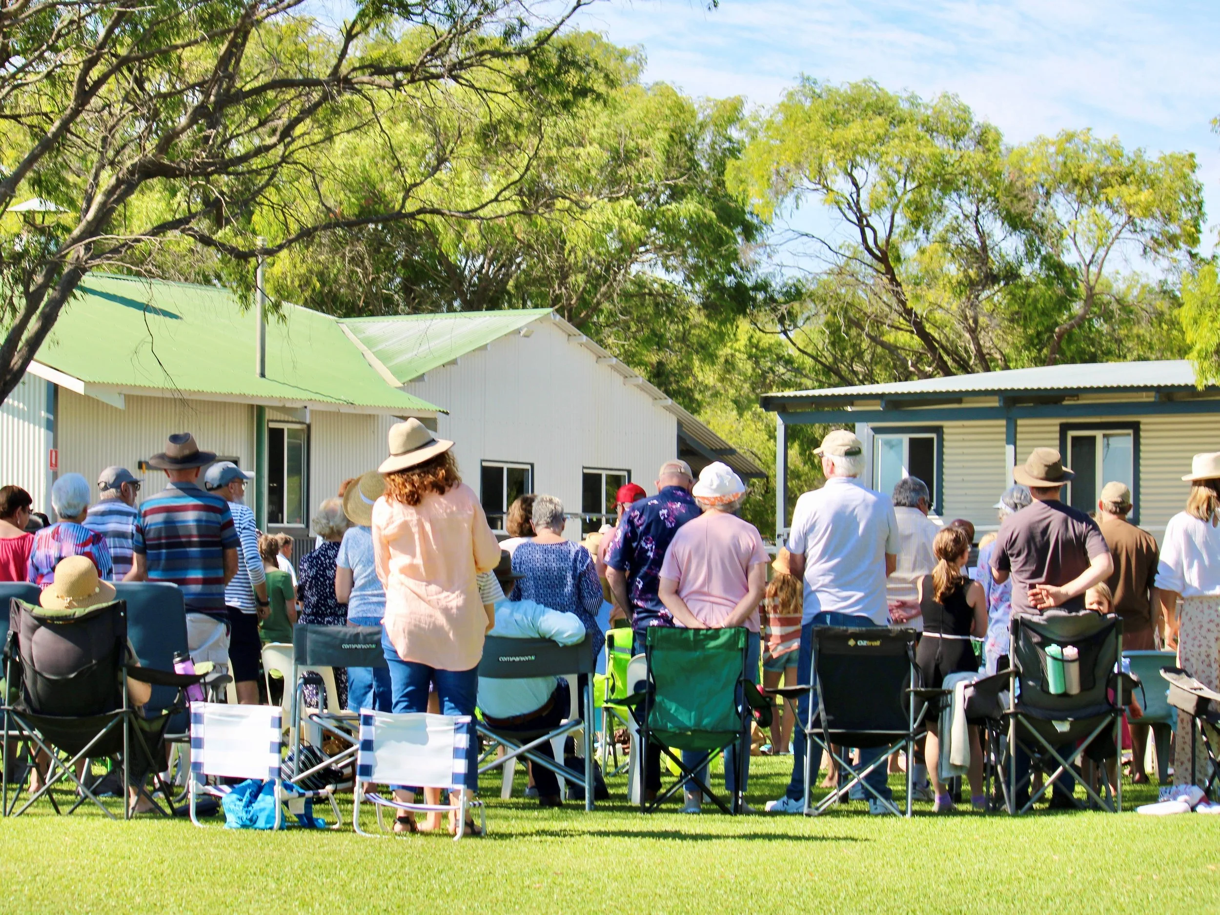 As church is outside on the grass please bring a chair or picinic rug, hat and sunscreen as needed.